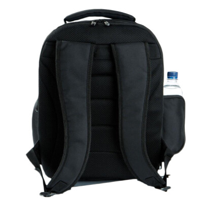 Padded laptop section, accepts most laptop computers up to 15.6" wide screen. Front pocket organiser section, side zippered pockets, and CD/MP3 compatible inc. headphone port.